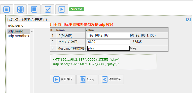 --向"192.168.2.187":6600发送数据:"play"udp.send("192.168.2.187",6600,"play");